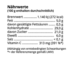 Unser Hagebuttenpulver ist nicht nur eine hervorragende Quelle für natürliches Vitamin C, sondern bietet auch wertvolle sekundäre Pflanzenstoffe. Perfekt geeignet, um Deinen täglichen Mahlzeiten wie Müsli, Joghurt oder Smoothies einen nährstoffreichen Kick zu geben. Das enthaltene Vitamin C unterstützt die normale Kollagenbildung und trägt so zur normalen Funktion der Knochen und des Knorpels bei.