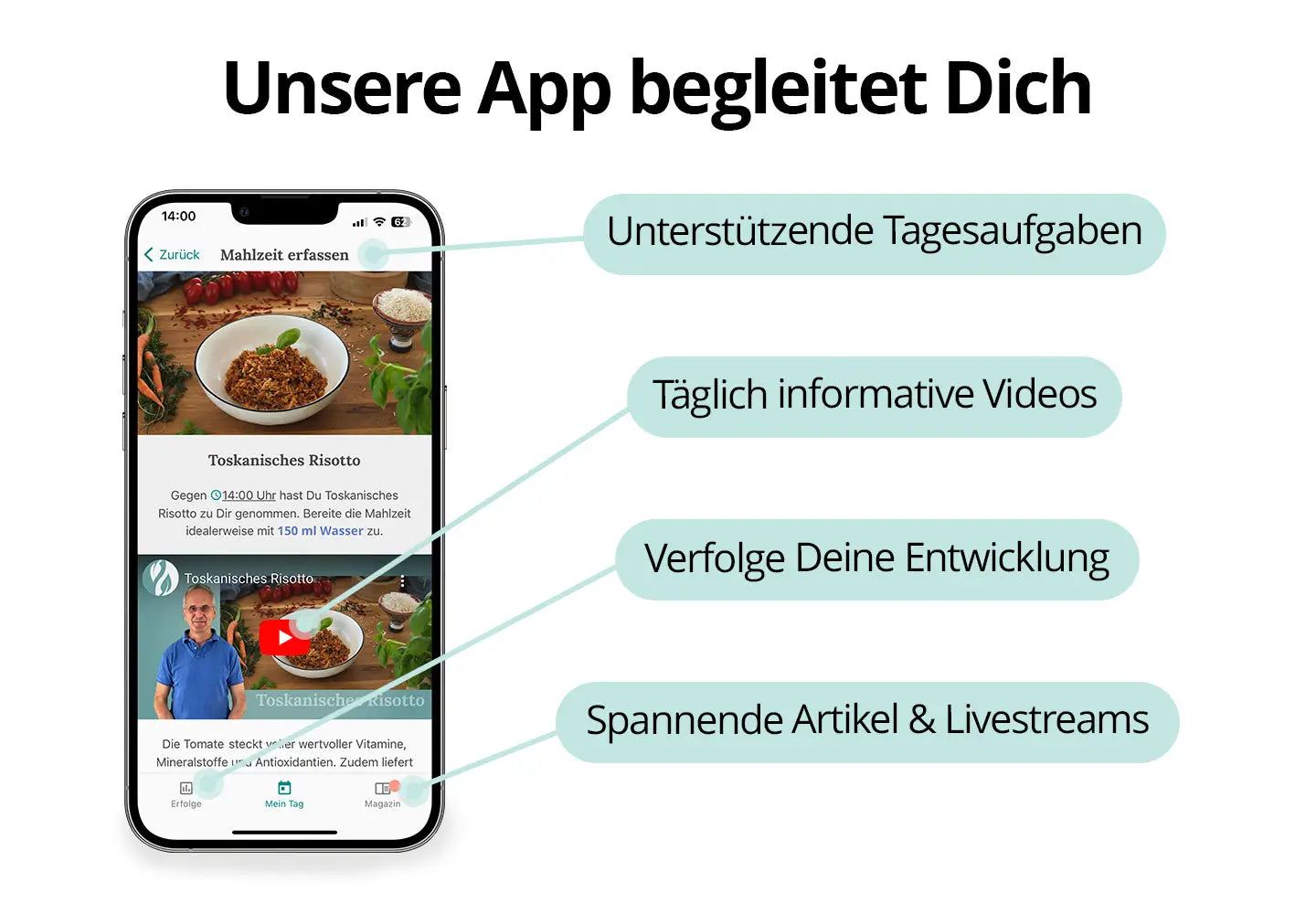 Die 15 diätetisch abgestimmten Fastenmahlzeiten enthalten ausgewählte, pflanzliche Inhalts- & Wirkstoffe, die den Hunger reduzieren, Dich gut versorgen und Dir das Leben während Deiner Fastenwoche deutlich erleichtern.