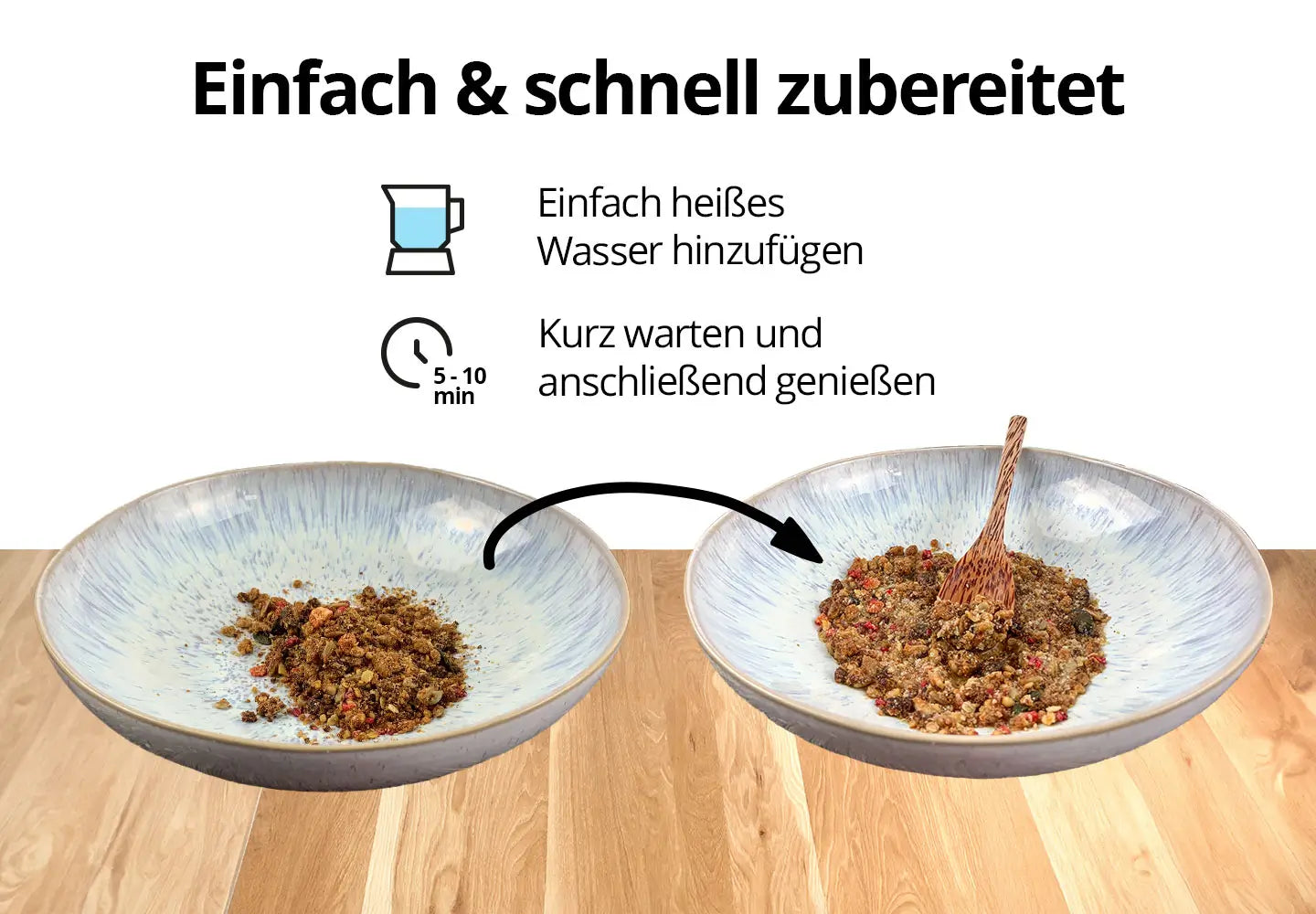 - Schnell zubereitet - Heißes Wasser drauf und loslöffeln!