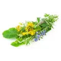 Eine erlesene Auswahl von bitteren Kräutern: Schafgarbenkraut, Tausendgüldenkraut, Anis, Fenchel, Brombeerblätter, Kornblumenblüten und Zitronengras.