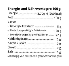 Rapsöl wird durch ein schonendes Kaltpressverfahren aus Rapssamen gewonnen und ist bekannt für seinen hohen Anteil an ungesättigten Fettsäuren. Es eignet sich hervorragend für die kalte Küche, wie zum Beispiel für Dressings und Marinaden, und kann auch zum leichten Anbraten verwendet werden. Durch seinen milden Geschmack ist es eine gute Wahl für viele Gerichte und verfeinert Speisen, ohne den Eigengeschmack zu überdecken.